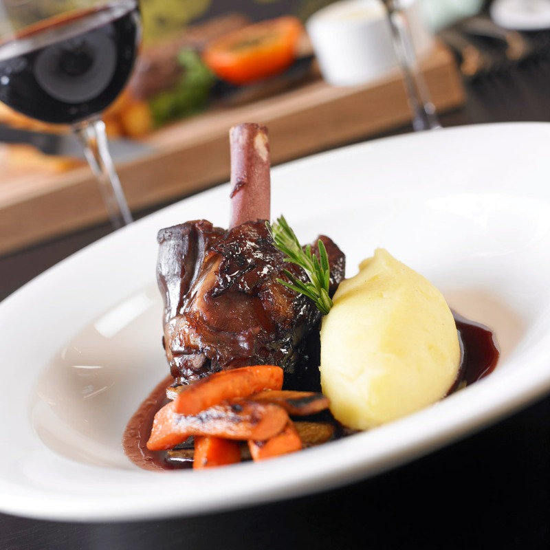 The main Marco Pierre White Steakhouse Bar & Grill offers French cuisine with British flair.