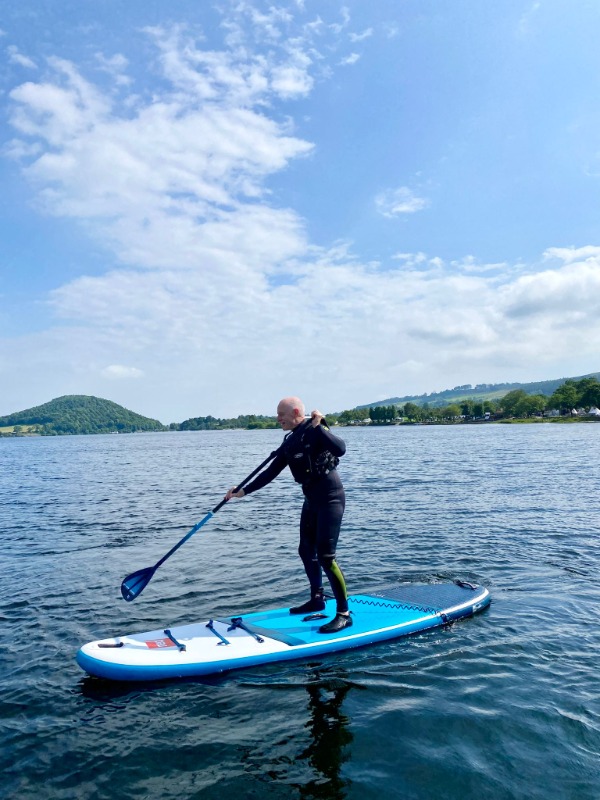 Squeezed into my wet suit our paddleboard trainer advised that we would make our way across the lake and back, which would take care of our 90-minute session, but first he needed to give us a few lessons on technique.