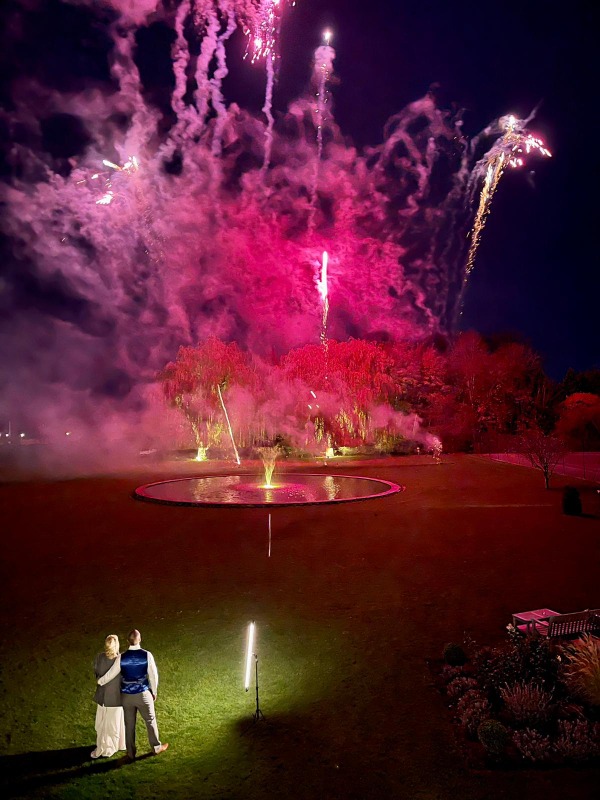 The grounds are manicured and sprawling and in the middle of the main lawn there is a playing fountain adjacent to the topiary gardens, themed around the Alice in Wonderland chess set.