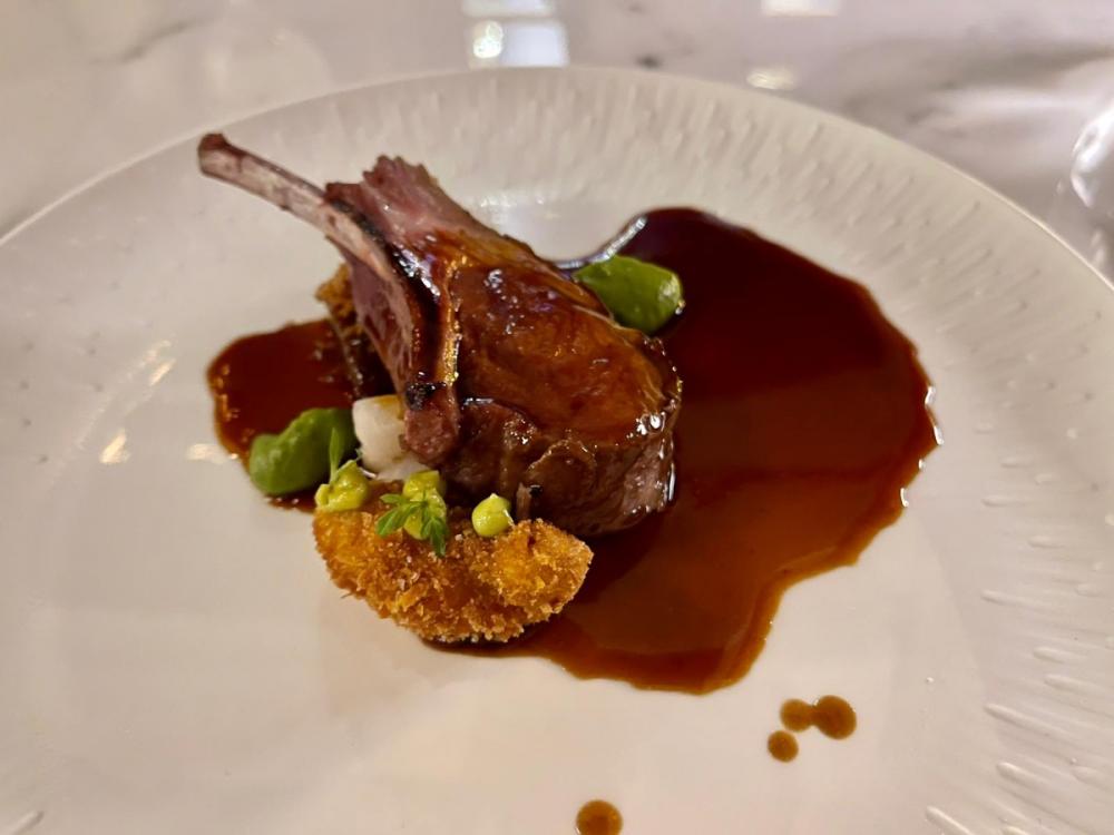 Salt baked halibut with a cauliflower and sparkling wine mousseline sauce, along with caviar and mussels on the side, was followed by Kirkby Malzeard Yorkshire lamb.