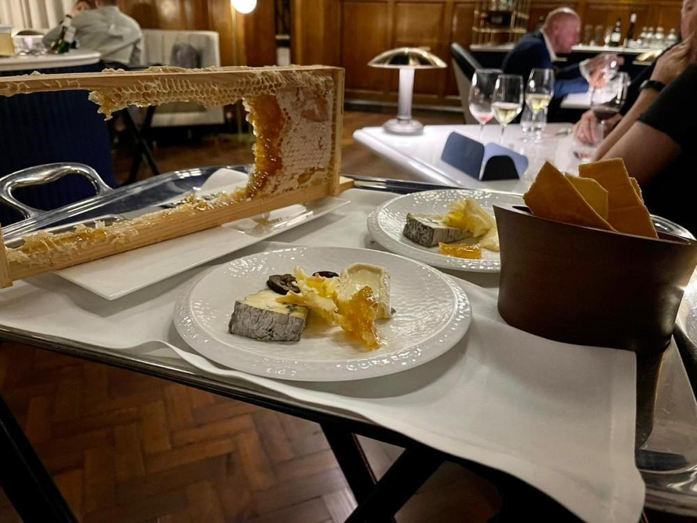 Antonio, who was wearing a wrist support, stepped forward. Discretion prompted me not to ask. He assured us that the final course – a raft of Yorkshire cheeses – would be accompanied with honey from the hotel’s very own beehives located on the roof.