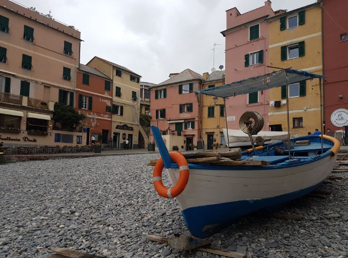 Today Boccadasse is best known for its ice cream parlours (gelaterie) and fish restaurants and, from the scenic viewpoint, you can walk down along the narrow alleyways, or ‘creuz’, to the small beach and carry on to Capo di Santa Chiara for lovely views of the coastline.