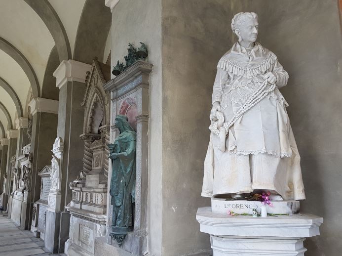 She was a humble street trader who spent most of her life selling nuts and pastries, so that she could squirrel away half of her fortune to buy the beautiful memorial statue that now stands in the Monumental Cemetery of Staglieno, surrounded by equally majestic memorials to the city’s wealthy and powerful merchant families.