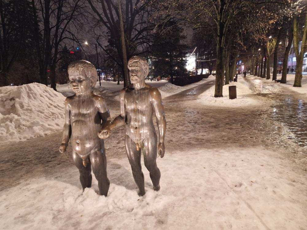 l challenge any visitor to ignore the ‘Kissing Students’ sculpture, currently in the middle of a temporary ice rink.