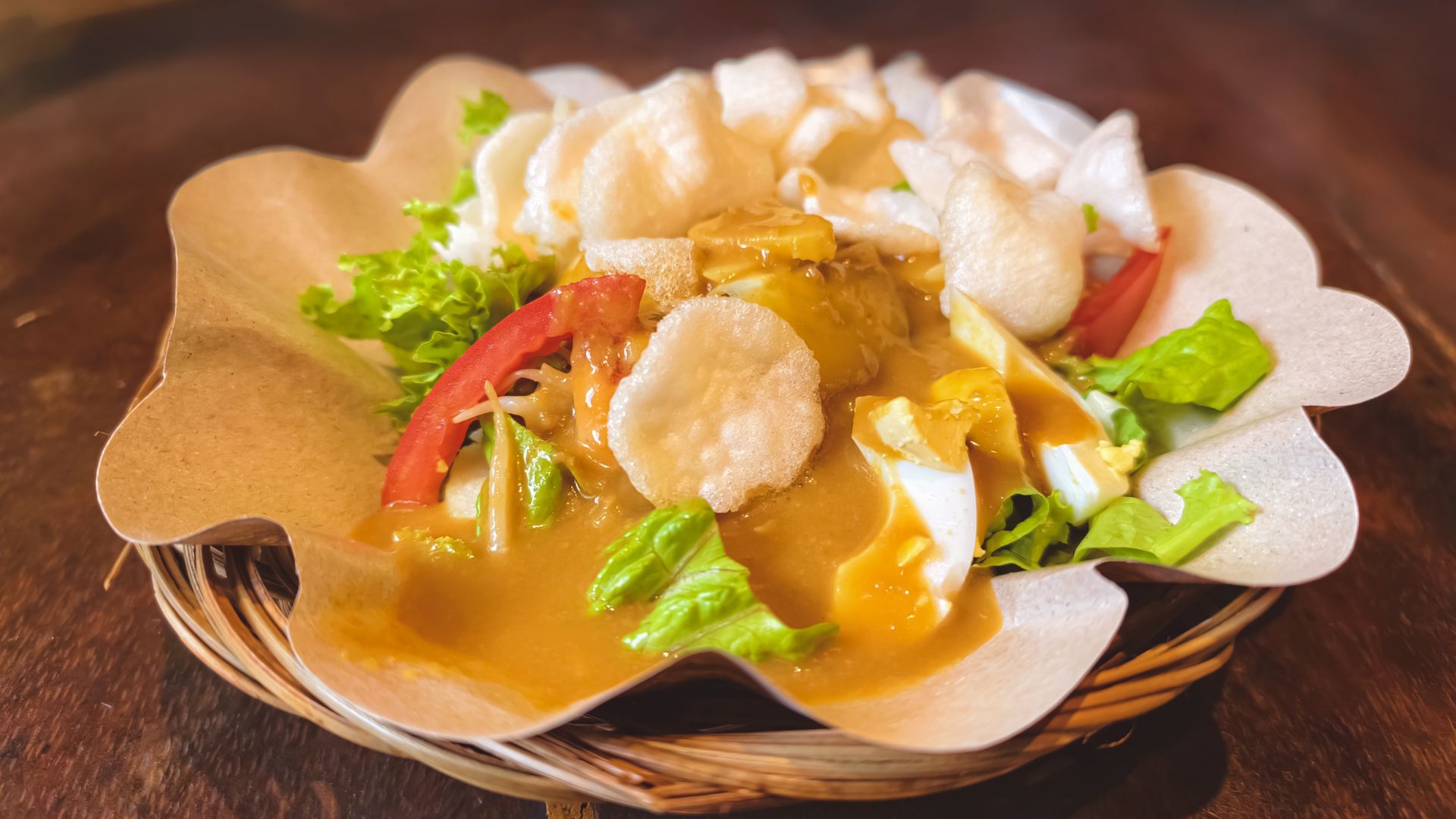 Indonesia’s beloved vegetable salad—blanched vegetables, tofu, tempeh, and boiled eggs dressed in thick peanut sauce with a squeeze of lime and crispy shallots. The vegetables should retain crunch; the sauce should balance sweet, sour, and spicy; the textures should vary from soft to crispy. Every region adjusts the recipe; every cook guards their sauce formula. Gado-gado appears everywhere from street carts to hotel restaurants, and quality varies enormously. Seek out places making their sauce fresh, using real peanuts rather than commercial pastes. Healthy, satisfying, and genuinely delicious—Indonesia’s answer to the composed salad.