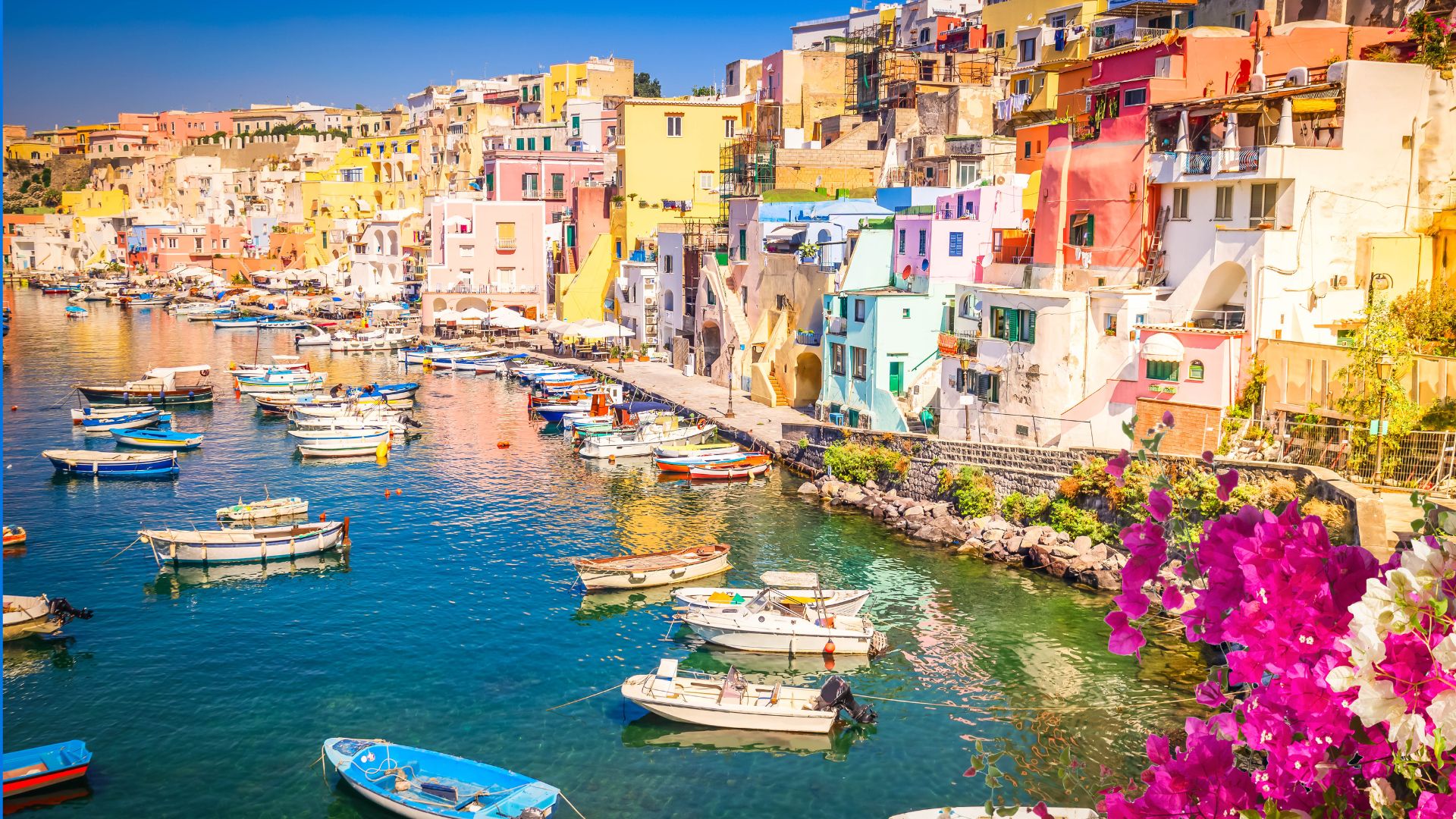 Procida, smallest of the three, remains the most authentic — a working fishing island that tourism has touched but not transformed. The harbour of Marina Grande, with its pink and yellow houses stacked on the hillside, provided the setting for Il Postino and numerous other films. The beaches are black volcanic sand; the restaurants serve whatever the boats brought in that morning; the pace of life remains Mediterranean in the best sense — slow, convivial, oriented around food and family and the sea.