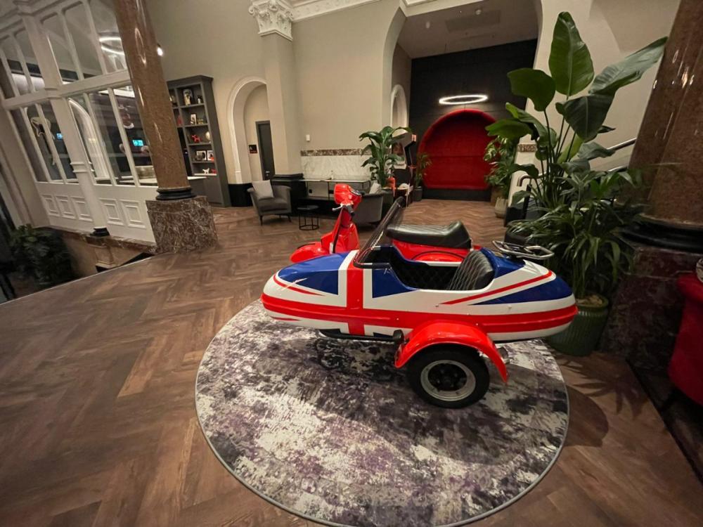 We mused to ourselves how the hotel reception looked like something straight out of an Austin Powers film with its scooter and sidecar adorned in Union Jack colours.