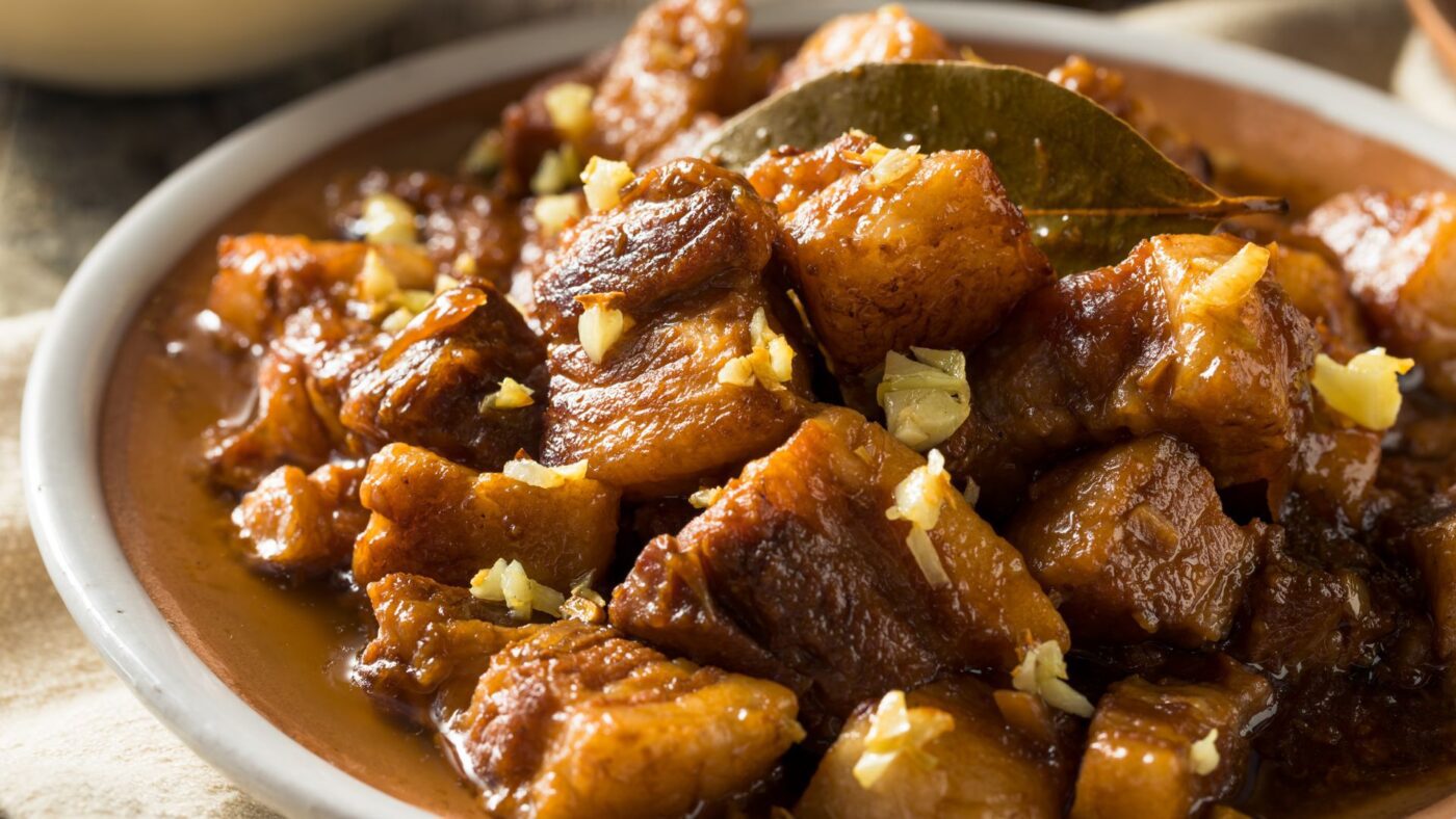 Every Filipino family guards their own adobo recipe, making this the country’s most debated dish. Chicken or pork (or both) braises slowly in vinegar, soy sauce, garlic, bay leaves, and black peppercorns until falling-apart tender. Regional variations abound—Batangas uses no soy sauce, Visayans add coconut milk, some finish under fierce heat for crispy edges. What unites them is soul-deep comfort, the alchemy of acid and savour, and perfect marriage with steaming rice that absorbs the dark, aromatic sauce. Eat at any carinderia (local eatery) for authentic versions that would honour any grandmother.