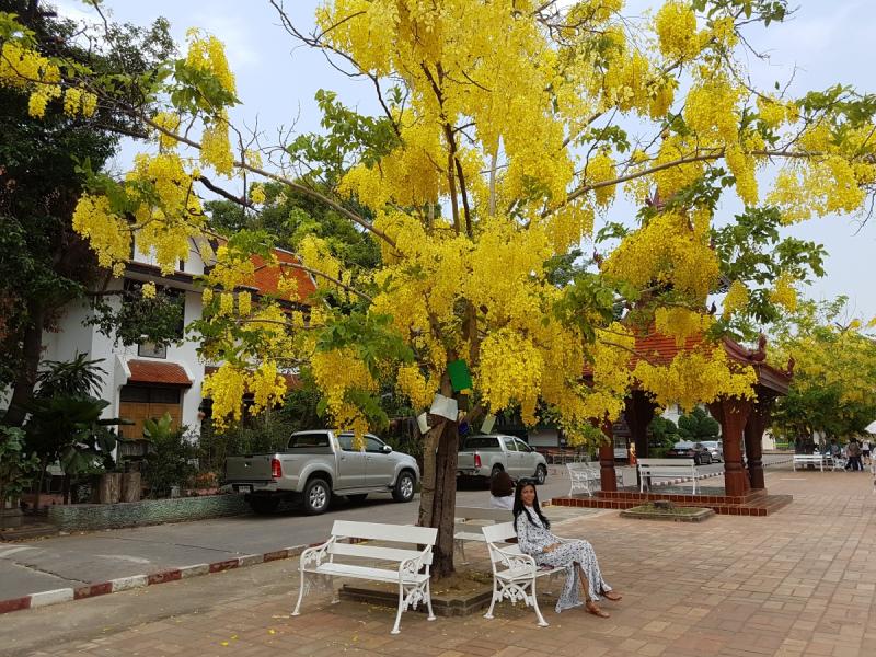 As we cool down in the air-conditioned taxi we pass dozens of trees teeming with yellow blossom. “We call them Chiang Mai’s ‘golden shoulder’” says Tas. “People love them. They are the flower of the King of Thailand and are at their best in Summer between March and July.”