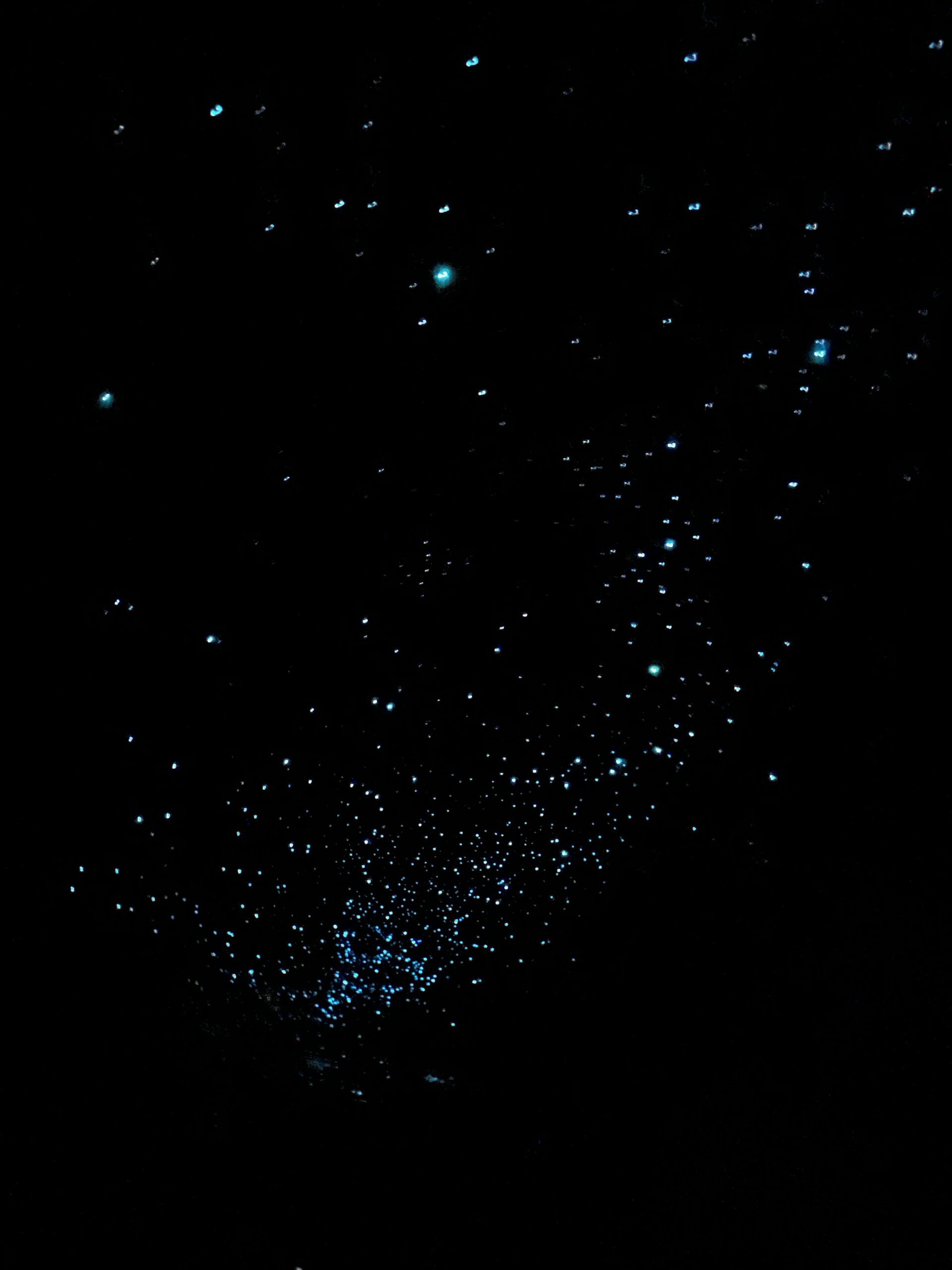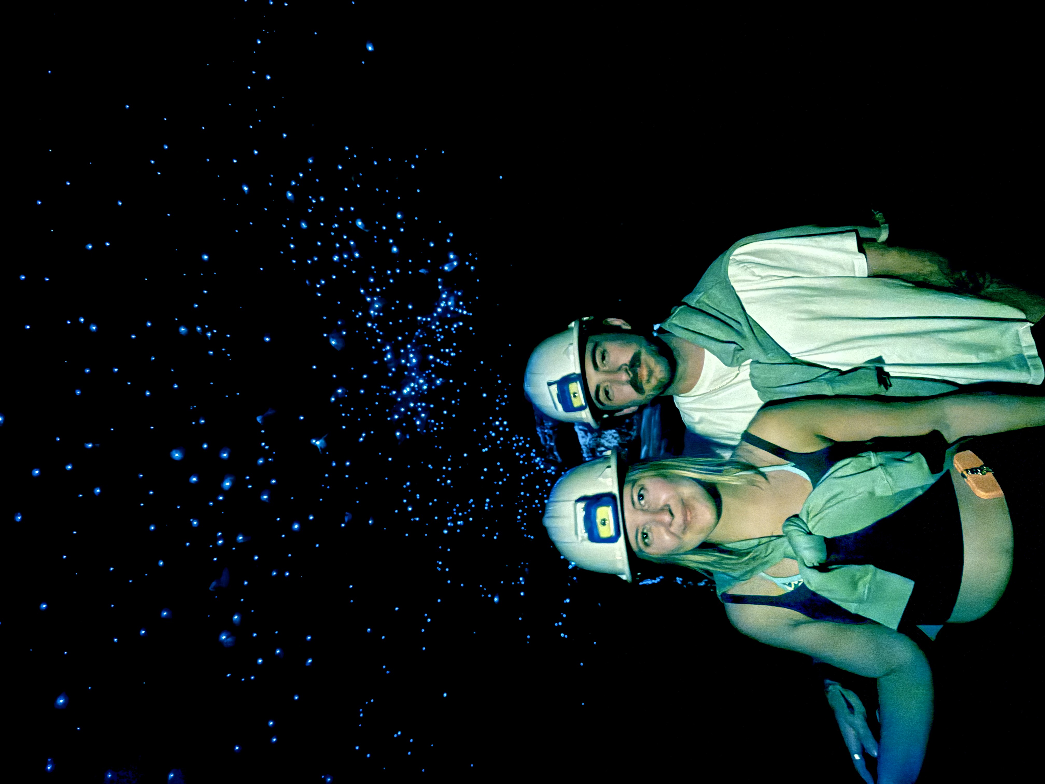 At one point our guide stopped us and asked everyone to switch off their torches. The darkness that followed was instant and absolute—the kind of blackness you don’t get anywhere above ground, the kind that makes you suddenly aware of your breathing and the pounding of your heart. We were told to give our eyes a few minutes to adjust, and at first, I honestly saw nothing at all. Just pure darkness. But slowly, almost shyly, tiny blue specks began appearing above us. One, then a few, then dozens, until it looked like someone had flicked on a galaxy that had always been there, waiting.