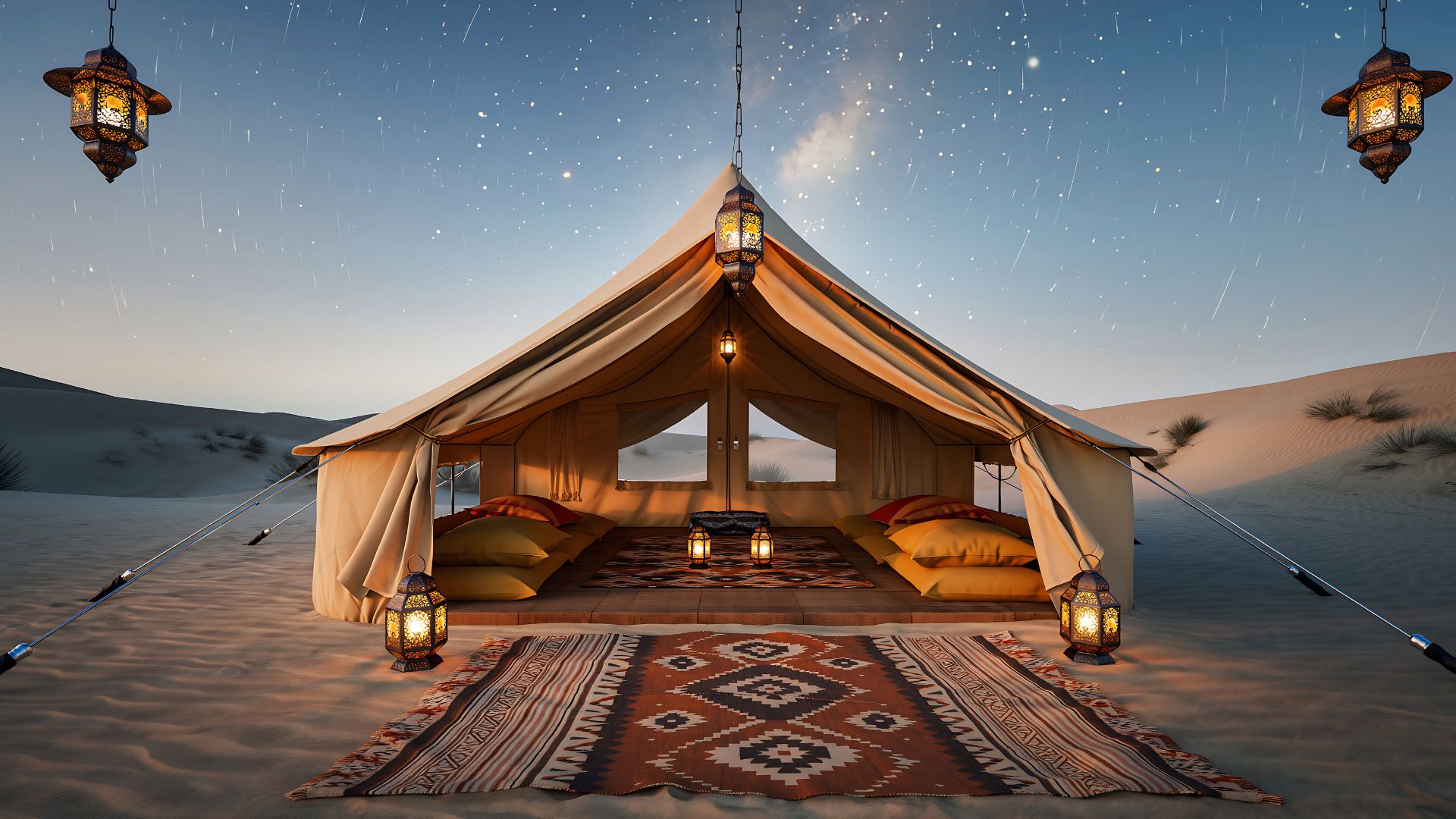 An hour from Dubai’s towers lies a landscape unchanged for millennia—rolling dunes that glow gold at dawn and copper at dusk, silence so complete you can hear your heartbeat. Luxury desert camps have transformed the Bedouin experience into something extraordinary: private tented suites with four-poster beds and en-suite bathrooms, candlelit dinners beneath a canopy of stars, and mornings that begin with the call to prayer drifting across empty sands. Take a sunset camel ride, try sandboarding on the dunes, or simply watch the constellations wheel overhead. This is romance stripped to its essence—you, your partner, and the eternal desert.