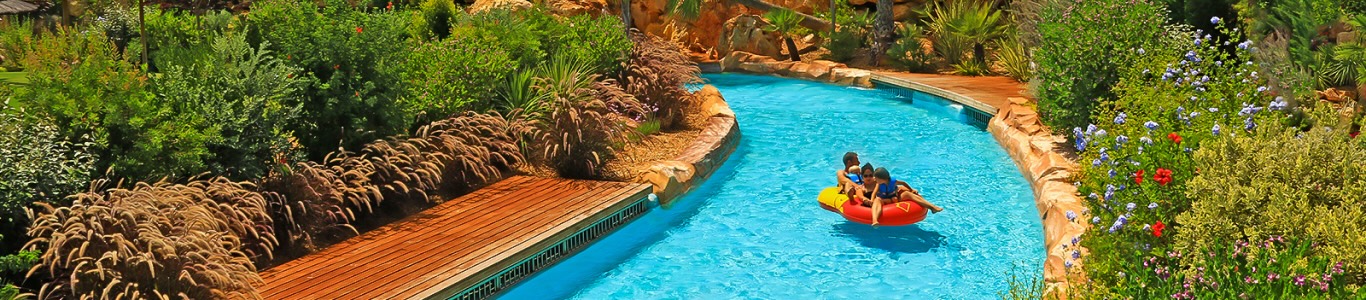 Budget for a family of five: €150-200 for entry, food, and the inevitable locker rental. Most parks run from June to September; opening hours extend in peak summer. Bring water shoes — the paths between attractions get scorching hot.