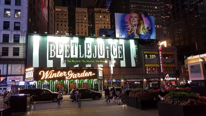“We don’t like Broadway, way too cheesy,” confided one lady in the coffee shop, however, as two Englishmen in New York we were quite happy to indulge in cheese overload, walking along Broadway for several miles taking in the newest theatrical offerings: West Side Story or another recent hit, the stage version of Beetlejuice which featured Michael Keaton in the original movie.